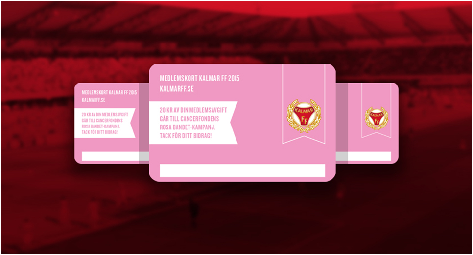 2015 beslutade Kalmar FF att skänka 20 kronor per inbetald meldemsavgift till Cancerfondens Rosa Bandet-kampanj. Innan årsskiftet betalades nästan 30 000 kronor in som ett resultat av vår medlemskampanj till Cancerfonden.