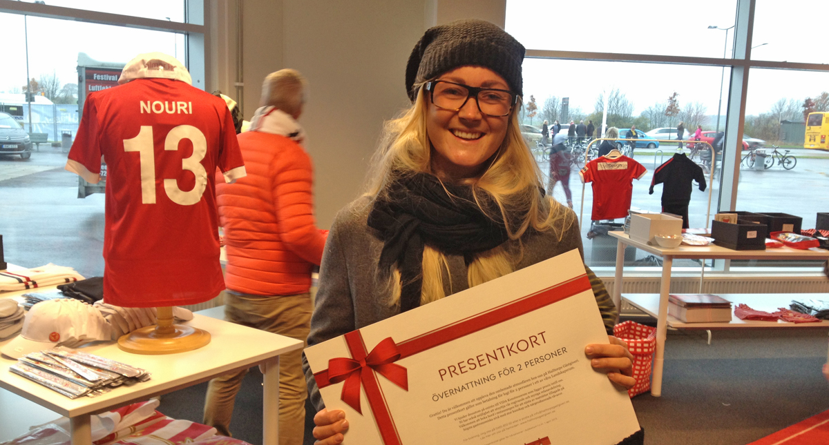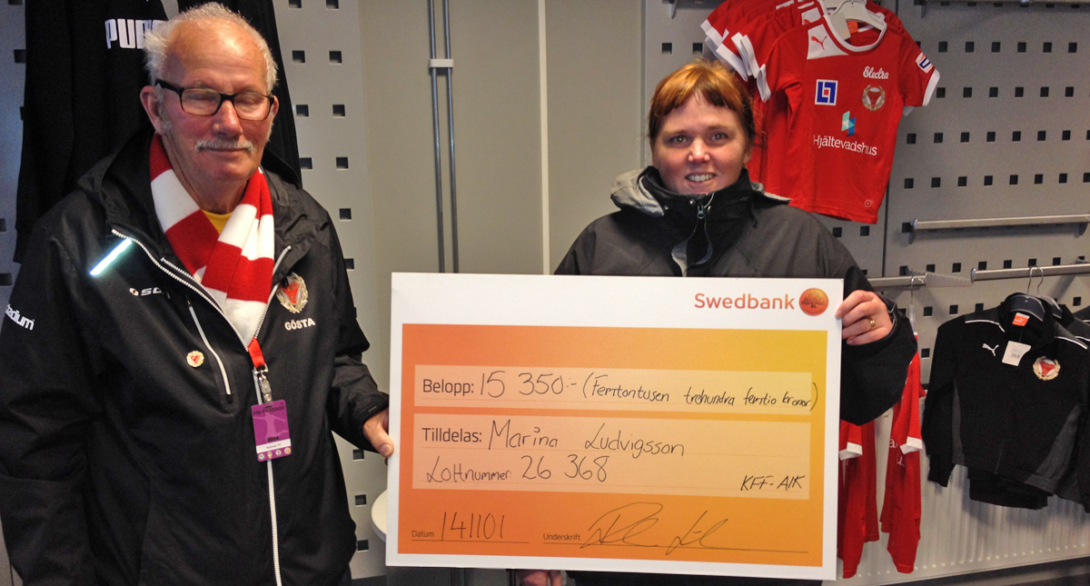 Marina Ludvigsson vinnare av 15 350 kronor i samband med lördagens match mot AIK