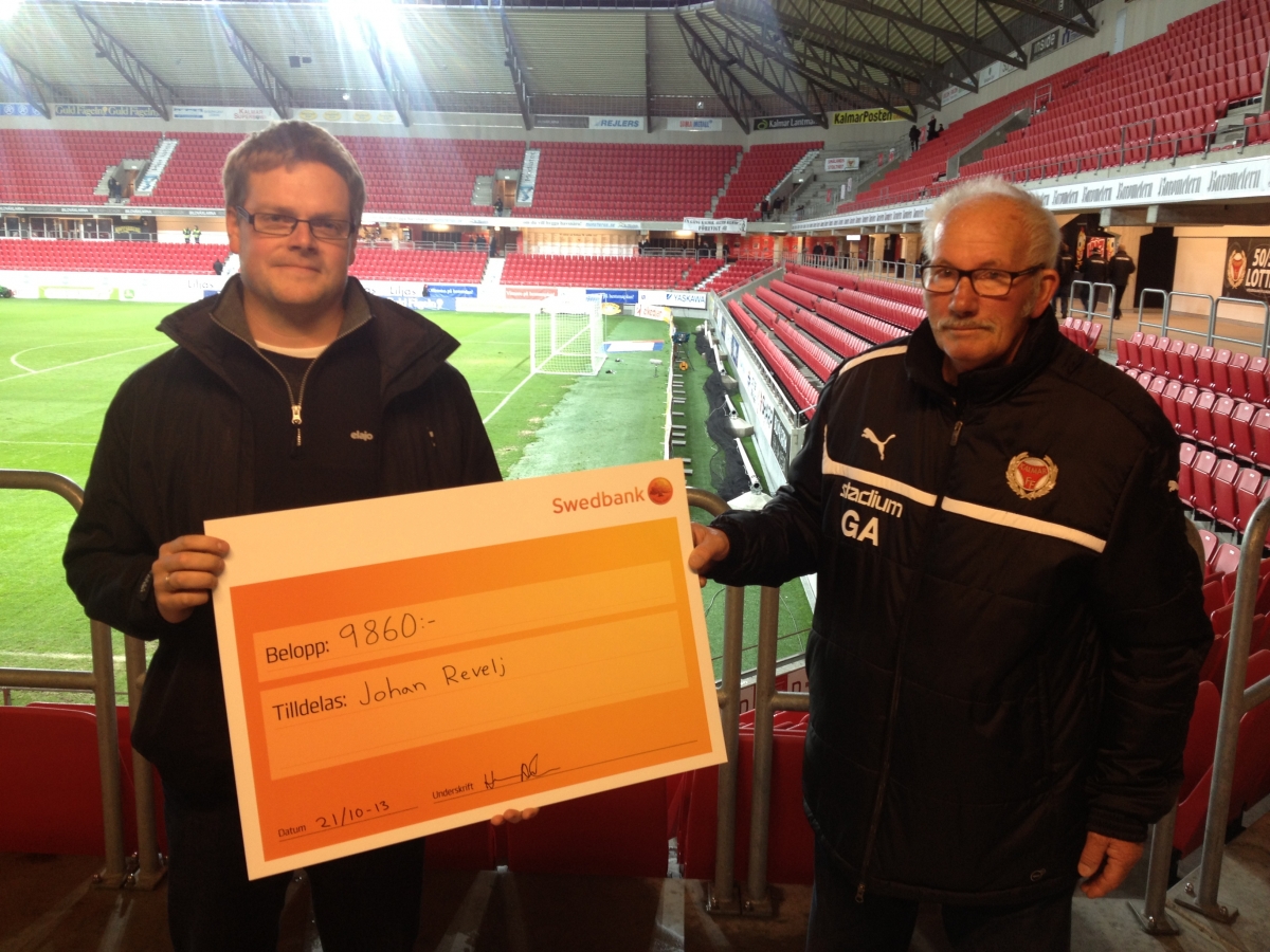 Johan Revelj vinnare av 9860 kronor i samband med måndagens hemmamatch mot Djurgårdens IF