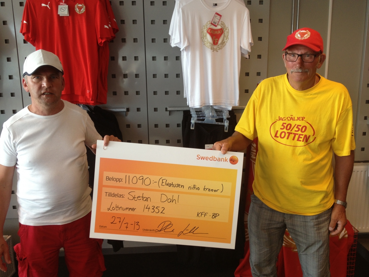 Vinnare av 50/50-lotten (halva potten) i samband med lördagens hemmamatch mot IF Brommapojkarna på Guldfågeln Arena blev Stefan Dahl från Kalmar. Stefan hade vinstlotten med numret 14352 och tog därmed hem hela vinstsumman på 11 090 kronor.