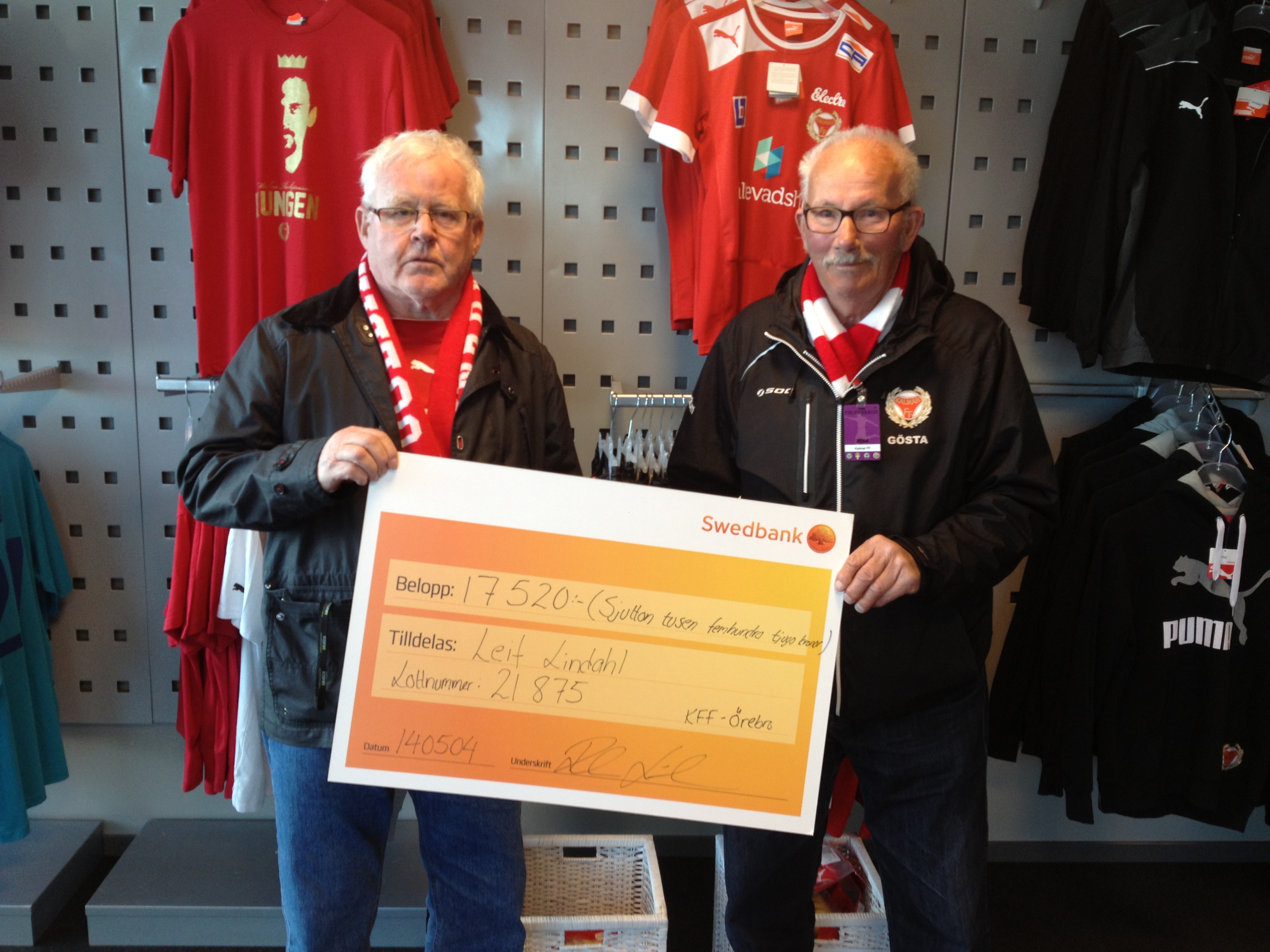 Vinnare av 50/50-lotten (halva potten) i samband med söndagens hemmamatch mot Örebro SK på Guldfågeln Arena blev Leif Lindahl från Kalmar. Leif hade vinstlotten med numret 21875 och tog därmed hem hela vinstsumman på 17 520 kr.