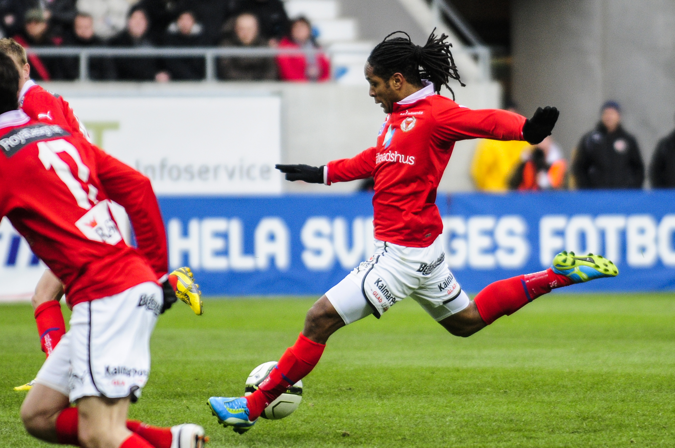 Efter det kom Kalmar FF åter in i matchen och radade upp målchenser. I 17:e minuten höll vi på att få se Nenad göra en repris på målet nere i Köpenhamn förra helgen men den här gången slog han hörnreturen rakt in i målgavelns yttersida.
