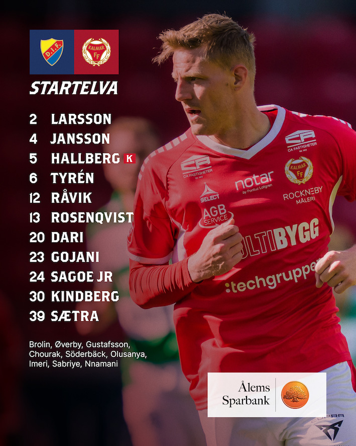 Med en timme kvar till avspark på 3Arena har Kalmar FF:s huvudtränare Toni Koskela presenterat startelvan till dagens match.