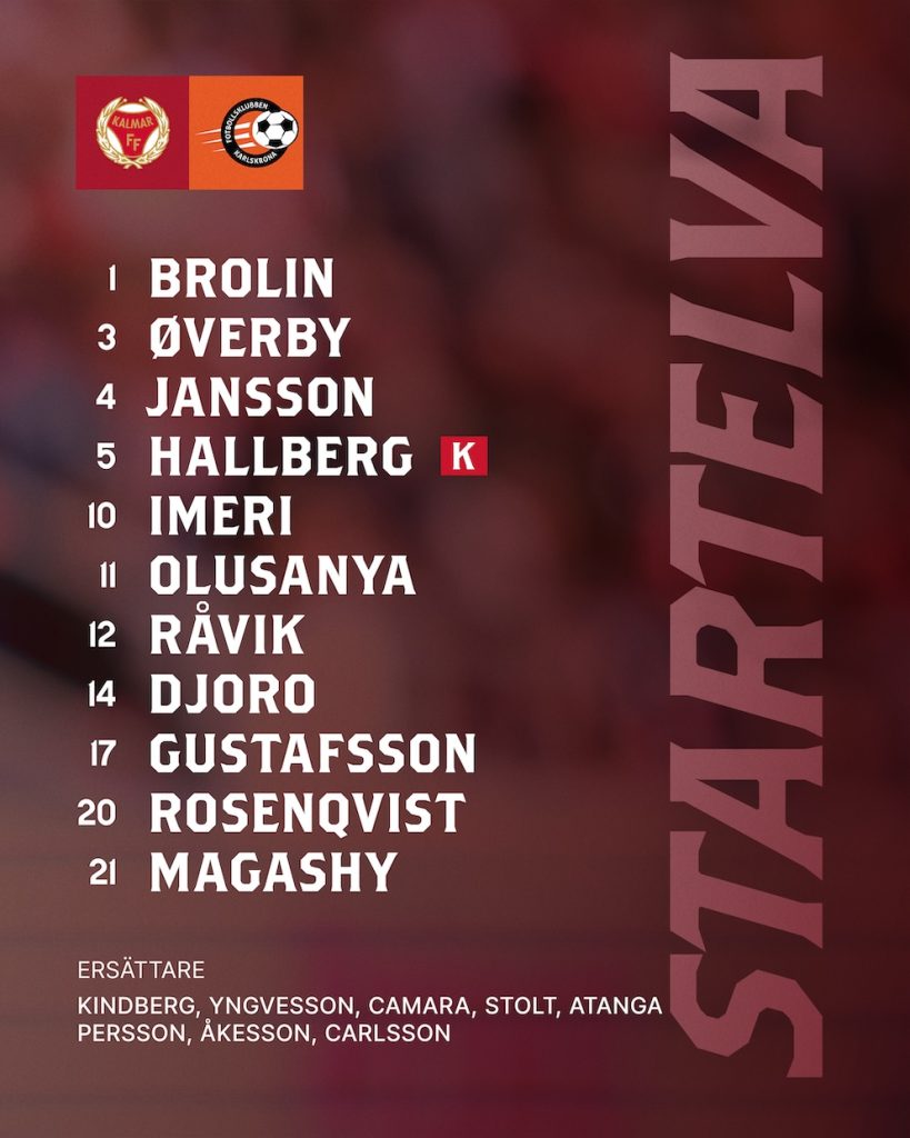 I eftermiddag kl.13:00 tar Kalmar FF emot FK Karlskrona på Gasten IP:s konstgräsplan. Med en timme kvar till avspark har huvudtränare Toni Koskela presenterat dagens startelva.