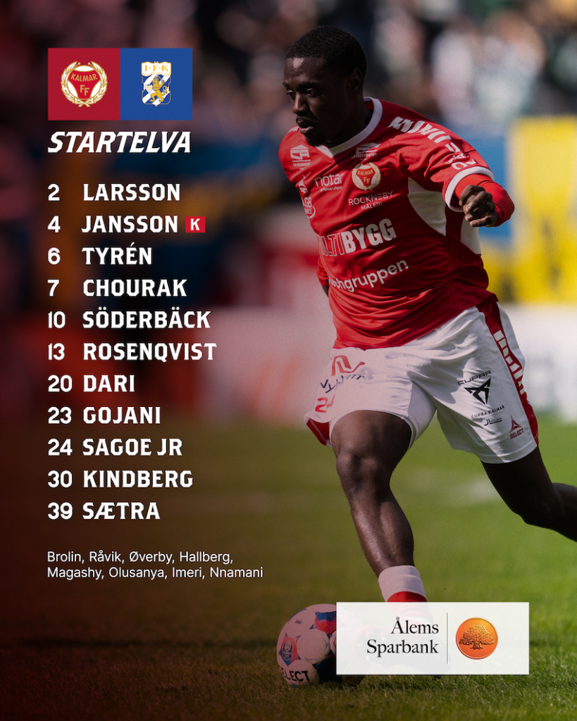 Med en timme kvar till avspark på Guldfågeln Arena har Kalmar FF:s huvudtränare Toni Koskela presenterat startelvan till dagens match.