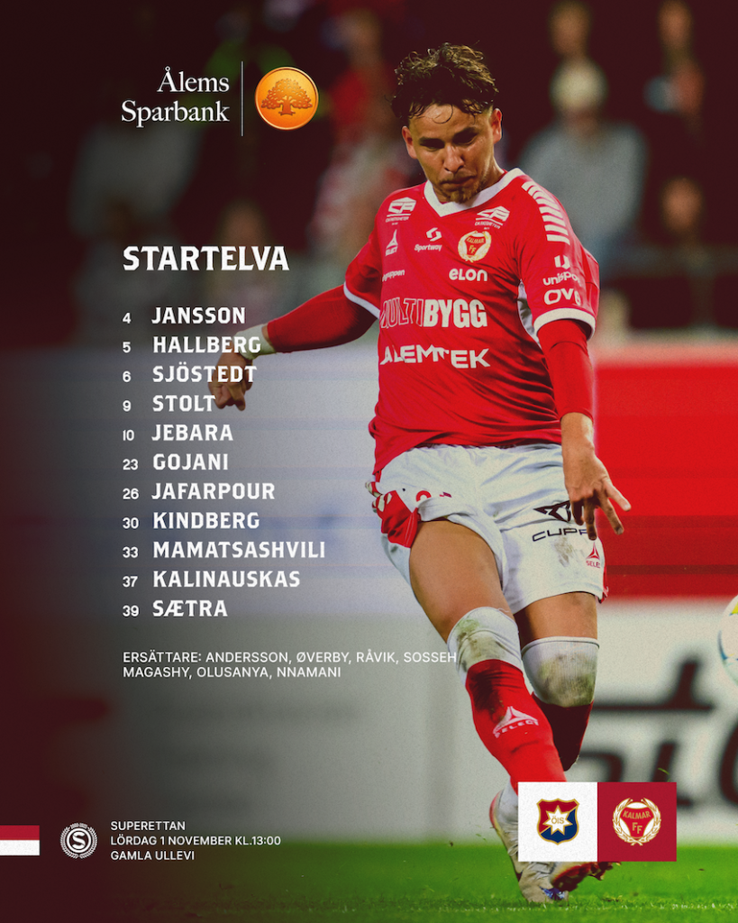 Med en timme kvar till avspark är nu startelvan till eftermiddagens bortamatch mot Örgryte IS presenterad.