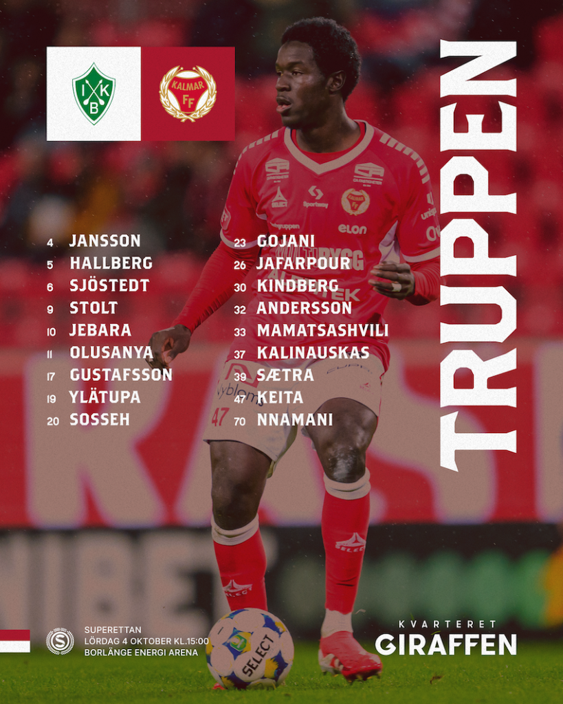 Med två timmar kvar till dagens bortamatch mot IK Brage är Kalmar FF:s trupp nu presenterad.