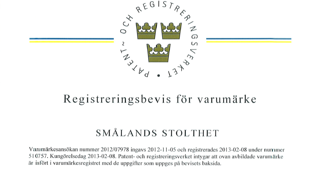 Detta missförstånd har förvirrat den lokala fotbollspubliken och därför har vi valt att registrera och varumärkesskydda vår slogan Smålands stolthet® hos Patent- och registreringsverket.